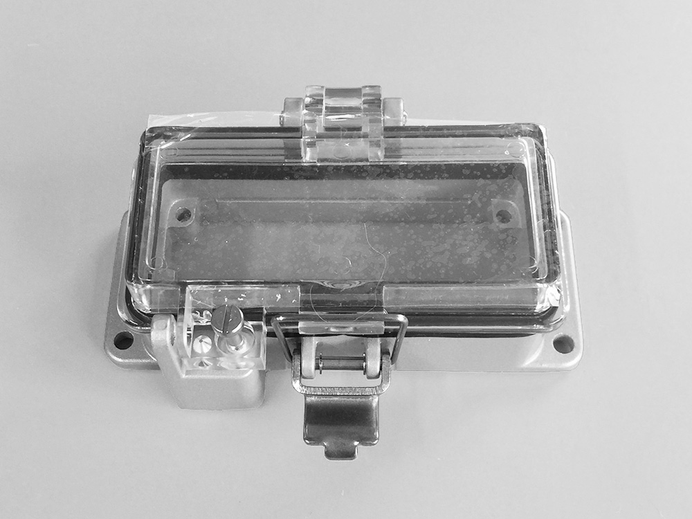 It consists of plastic cover and aluminum base. It is designed for various receptacles, switches and GFCI. It provides dust proof and grease proof. It is UL certified.